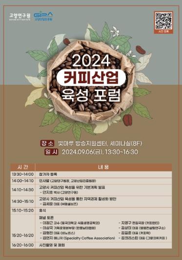 고양연구원과 고양산업진흥원이 공동으로 주관하는 ‘2024 커피산업 육성 포럼’이 오는 6일 빛마루방송지원센터 세미나실에서 개최된다. 커피산업 종사자와 관련 전문가가 참석해 고양시 전략산업으로서 커피산업 육성에 대한 심도있는 논의를 할 예정이다.