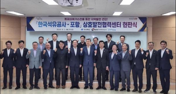 경상북도는 포항시, 한국석유공사와 함께 5일 포항시청에서 한국석유공사 상호발전협력센터 현판식을 열고 본격 운영에 들어간다.