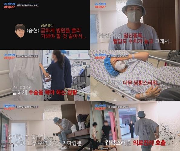 이어 김승현의 아내 장 작가는 침대에 누운 채 “너무 당황스러워...”라며 어쩔 줄을 몰랐고, 김승현은 “너무 걱정하지 마”라며 아내를 안심시켰다. 그렇게 장 작가는 수술실에 들어갔고, 김승현은 수술실 앞에서 초조하게 기다렸다.