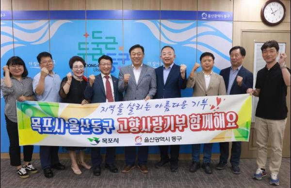 목포시가 시행 2년차인 고향사랑기부제 활성화를 도모하고 지역 간 상호협력과 상생발전을 위해 지난 5일 울산 동구청을 방문했다.