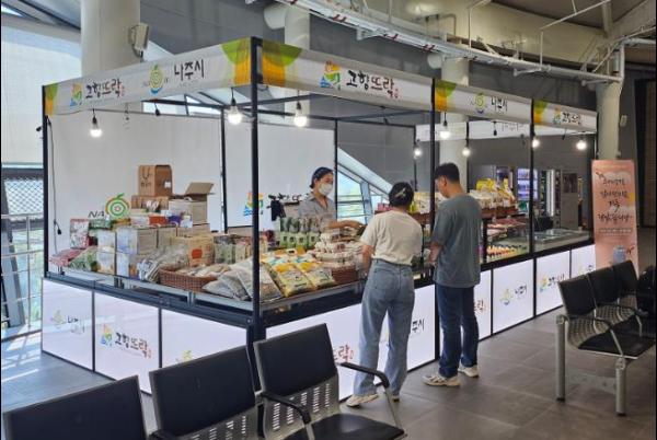 전라남도 나주시는 오는 30일까지 나주역 대합실에서 '고향뜨락 나주시 농특산물 판매장'을 운영한다고 6일 밝혔다.