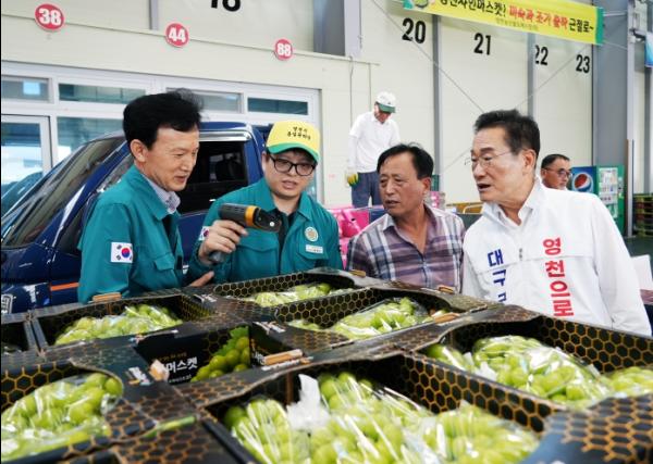 다가오는 추석 명절을 앞두고 영천시는 지난 5일 영천시농산물도매시장, 영천농협공판장, 능금농협영천공판장을 찾아 과일 농가와 유통 종사자를 격려하고 명절 성수기 농산물 유통 현장을 점검했다.