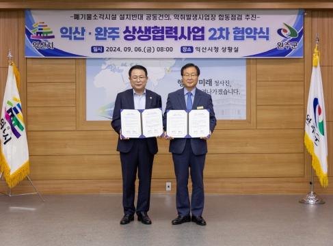 이번 협약을 통해 두 시군은 '봉동읍 구암리 폐기물소각시설 설치 반대 공동건의'와 '익산·완주 악취배출시설 합동점검'을 추진한다.