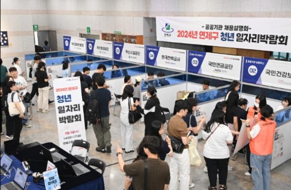 연제구는 9월 4일 구청 지하 1층에서 청년구직자 400여 명이 참여한 가운데 '2024년 연제구 청년 일자리박람회'를 성황리에 개최했다.