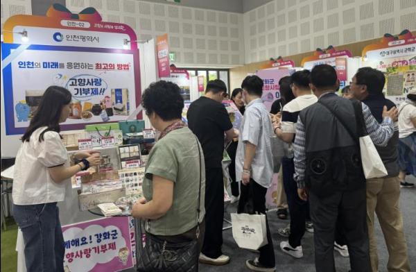 군은 박람회 기간 동안 강화군 고향사랑기부제 전시부스를 운영해 관람객을 대상으로 고향사랑 기부 방법과 혜택 등의 정보를 안내하고 강화섬쌀, 홍삼진액, 약쑥환, 소창 제품, 와인 등 다양하고 매력적인 답례품을 전시했다.