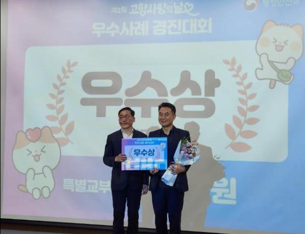 영암군이 6일 경남 경주화백센터에서 열린 행안부의 ‘제1회 고향사랑기부제 우수사례 경진대회’에서 우수상을 수상했다.