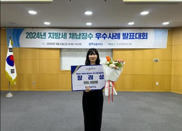 부안군은 지난 6일 전북특별자치도청에서 개최된 2024년 지방세 체납징수 우수사례 발표대회에서 재무과 이제인 주무관이 장려상을 수상했다고 밝혔다.