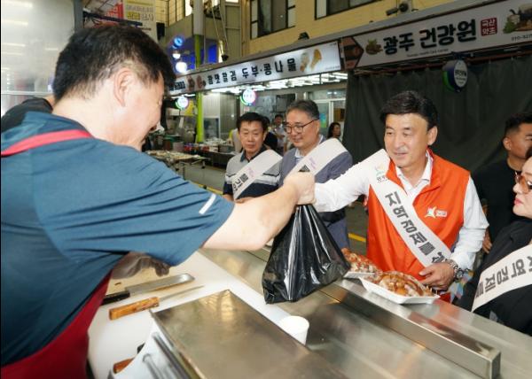 광주시는 9일 추석 명절을 맞아 물가안정 동참 캠페인과 골목상권 및 전통시장 소비 촉진을 위한 장보기 행사를 경안시장 일대에서 진행했다.