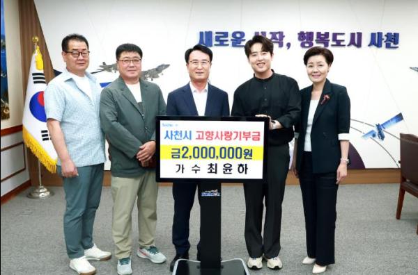 최윤하는 “내고향 사천 발전에 조금이나마 기여할 수 있어 기쁘다. 많은 분들이 고향사랑기부제를 통해 사천을 응원해 주셨으면 좋겠다”고 소감을 밝혔다.
