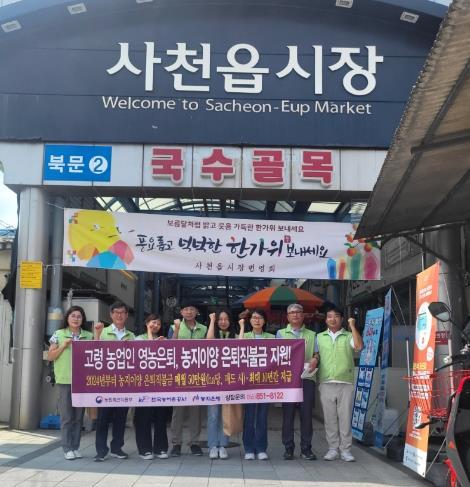 한국농어촌공사 사천지사는 고유 명절인 추석을 맞이해 사천읍 시장에서 지역 농업인을 대상으로 올해 신규사업인'농지이양 은퇴직불제'집중 홍보 활동에 나섰다고 9일 밝혔다.