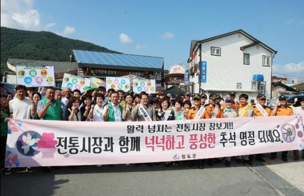 청도군은 9일 청도시장에서 추석 명절을 앞두고 전통시장 활성화와 지역경제 회복을 위해 “활력 넘치는 전통시장 장보기 행사”를 성황리에 추진했다.