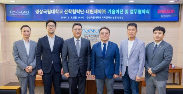 경상국립대학교 산학협력단과 대원제약은 9월 9일 가좌캠퍼스 대학본부 접견실에서 ‘건강기능식품 호흡기 건강 기능성 소재 기술이전 계약 및 업무협약’을 체결했다.