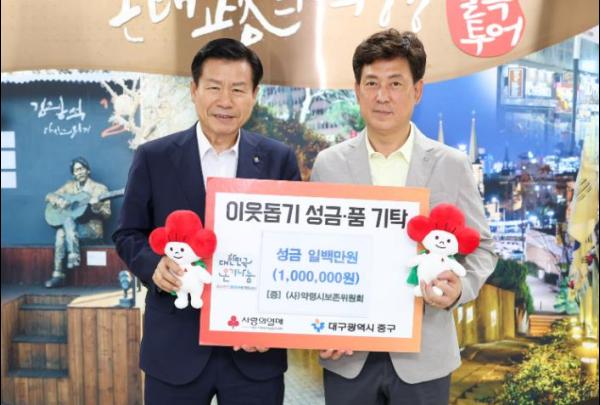 (사)약령시보존위원회는 6일 대구 중구청을 방문해 추석맞이 이웃돕기 성금 100만원을 기탁했다.