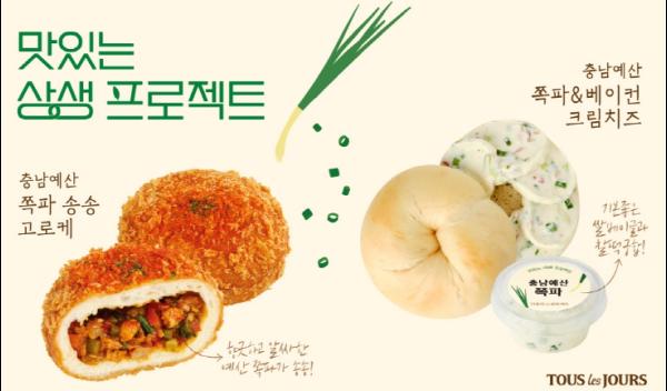 충남 예산 쪽파를 활용한 씨제이(CJ)푸드빌의 신제품이 전국 뚜레쥬르 매장을 통해 소비자와 만난다.
