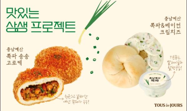 예산군은 CJ푸드빌㈜과 손잡고 CJ푸드빌이 운영하는 뚜레쥬르에서 지역 특산물인 예산 쪽파를 활용한 신제품 ‘충남 예산 쪽파 송송 고로케’와 ‘충남 예산 쪽파·베이컨 크림치즈’를 전국 뚜레쥬르 매장에 9월 10일부터 출시한다고 밝혔다.