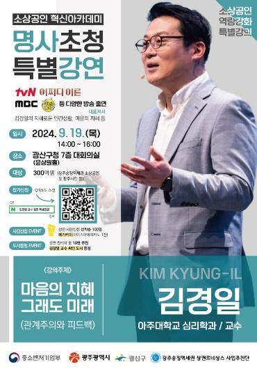 광주 광산구가 ‘마음의 지혜 그래도 미래(관계주의와 피드백)’라는 주제로 ‘소상공인 혁신 아카데미’ 특별강연을 연다.