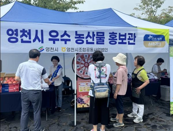 이번 행사에서는 영천시조합공동사업법인에서 운영하는 우수 농산물 홍보관에서 포도, 복숭아, 사과 등 다양한 영천 과일 시식행사와 함께 ‘돌려라 돌려’ 룰렛 이벤트를 진행해 영천과일 홍보에 앞장섰다.