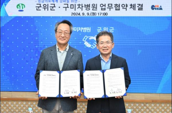 지난 9월 9일 군위군청 제2회의실에서는 군위군과 구미차병원 간 응급의료체계 구축을 위한 업무협약(MOU) 체결식이 있었다.