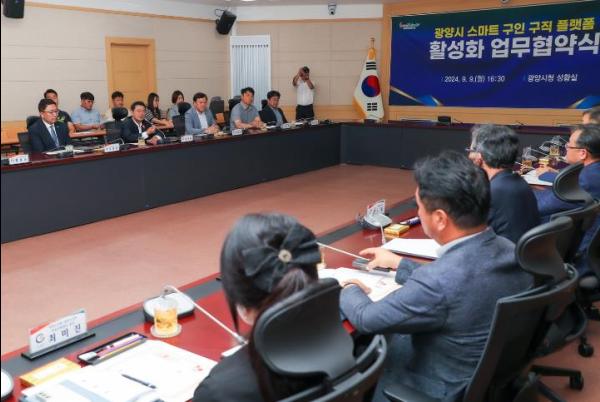 광양시는 9일 시청 상황실에서 지역고용 활성화 및 일자리 미스매치 해소를 위한 ‘스마트 구인구직 플랫폼 활성화’ 업무 협약식을 개최했다고 밝혔다.