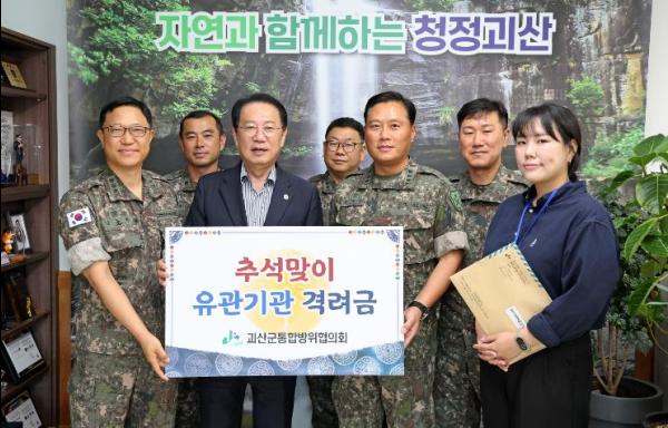 충북 괴산군 통합방위협의회는 10일 추석 명절을 맞아 통합방위작전·을지훈련에 참가한 유관기관을 초청해 격려하고 위문금을 전달했다.
