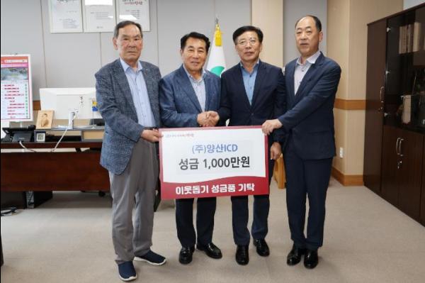 ㈜양산ICD는 추석을 맞아 지난 9일 주주사들의 힘을 모아 마련한 이웃돕기 성금 1,000만원을 양산시에 기부했다.