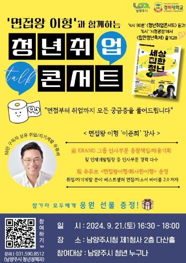 한편, 청년취업토크콘서트는 홍보물 포스터 내 QR을 통해 신청이 가능하다.
