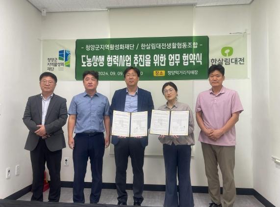 청양군지역활성화재단은 지난 9일 청양먹거리직매장에서 한살림대전생활협동조합과 도농상생 협력사업 추진을 위합 업무 협약(MOU)를 체결했다.