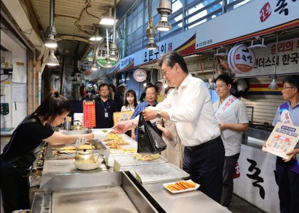 이 구청장은 “주민들께서 지역경제의 뿌리인 전통시장에서 저렴하고 품질 좋은 농특산물과 차례 용품을 구매해 상권 활성화에 힘이 돼 주시길 부탁드린다.”라며, “가족과 함께 모두가 행복한 한가위를 보내시길 기원한다.”라고 말했다.