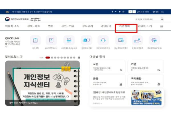 ‘개인정보 지식센터’는 개인정보보호위원회 누리집 ‘기업참여’ 메뉴 안에 새롭게 개설된 소통공간으로, 개인정보 관련 모니터링과 사전검토가 필요한 기업에는 가이드가 되고, 개인정보에 관심이 많은 국민에게는 현안, 이슈를 두루 살펴보는 창구가 되도록 유용한 정보를 담을 예정이다.