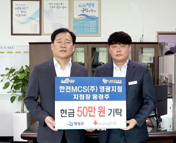 지난 10일 한전MCS(주) 영광지점은 영광군을 방문하여 어려운 이웃을 위해 써달라며 현금 50만 원을 기탁했다.