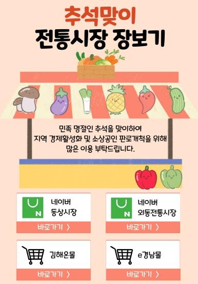 김해시도시개발공사는 추석 명절을 앞두고 전통시장 장보기 캠페인을 8월 26일부터 9월 8일까지 약 14일간 추진했다고 밝혔다.