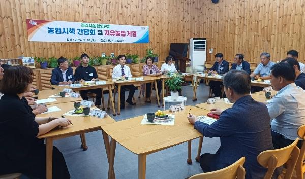 진주시는 지난 10일 대평면 소재 물사랑 교육농장에서‘농업인단체 농업시책 간담회’를 가졌다.