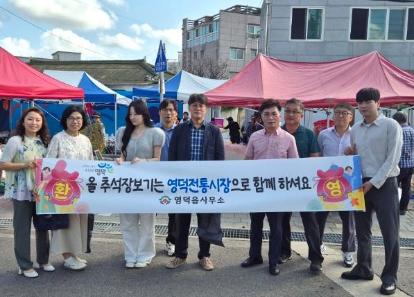 영덕군 영덕읍 박현규 읍장과 직원 15명은 다가오는 추석을 맞아 지역 시장 상인들과 소통하고 시장 활성화를 촉진하기 위해 지난 9일 영덕 임시 전통시장을 찾아 장보기 행사를 펼쳤다.