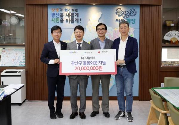 광주 광산구는 11일 ㈜나눔테크이 지역 어려운 이웃을 위해 2,000만원을 기탁했다고 밝혔다.