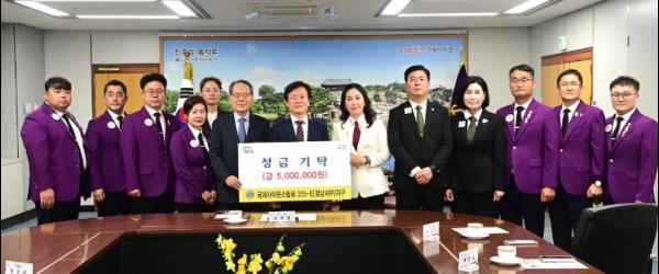 국제라이온스협회 355-E(경남서부)지구는 11일 진주시청 기업인의 방에서 장애인들의 체육 진흥 및 사회참여 활동을 지원하기 위해 성금 500만 원을 진주시복지재단에 기탁했다.