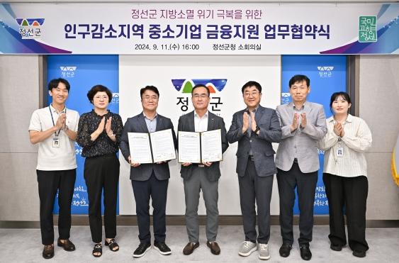 정선군은 11일 군청 소회의실에서 인구감소지역 기업지원을 위해 NH농협은행 정선군지부와 ‘정선군 지방소멸 위기 극복을 위한 인구감소지역 중소기업 금융지원 업무협약’을 체결했다고 밝혔다.