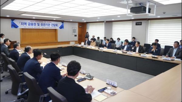 이날 간담회는 고금리 장기화와 내수경기 침체, 경영여건 악화 등으로 어려움을 겪고 있는 지역기업과 소상공인 금융지원 협력방안을 논의하기 위해 마련됐다.