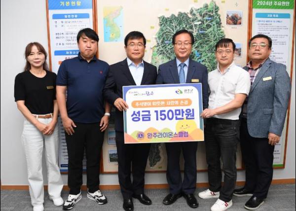 완주라이온스클럽이 지난 11일 추석을 맞아 완주군에 저소득 가정과 수해 가구를 위해 성금 150만 원을 기부했다.