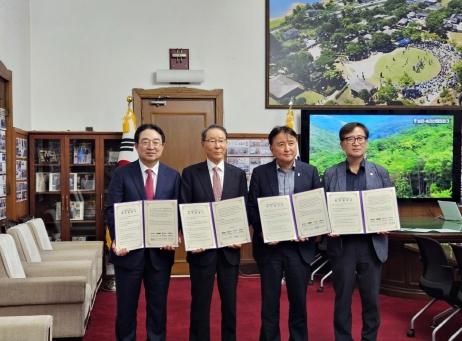옥천군, 충북도, 충북개발공사, 인지그룹이 옥천군 장계관광지를 활성화하기 위해 한자리에 모였다.
