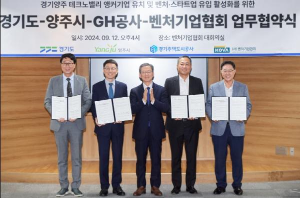 양주시가 서울 구로구 벤처기업협회 대회의실에서 경기도, 경기주택도시공사, (사)벤처기업협회과 함께 양주 테크노밸리 앵커기업 유치 및 벤처·스타트업 유입 활성화를 위한 업무협약을 체결했다고 12일 밝혔다.