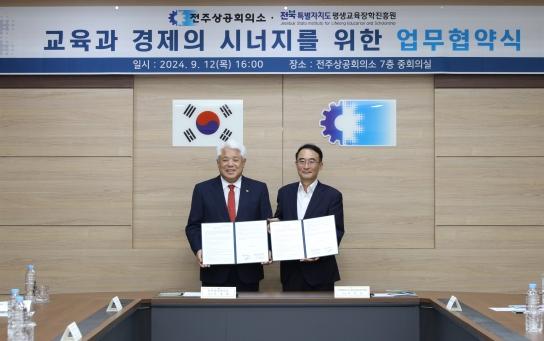 전북특별자치도평생교육장학진흥원은 전주상공회의소와 업무협약(MOU)을 체결했다