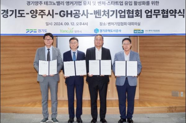 경기주택도시공사(GH)는 12일 서울 구로구 벤처기업협회에서 경기도, 양주시, 벤처기업협회와 함께 양주 테크노밸리 앵커기업(선도기업) 유치 및 벤처 스타트업 유입 활성화를 위한 양해각서(MOU)를 체결했다고 밝혔다.