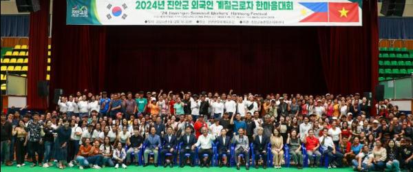 진안군은 지난 12일 오후 군 문예체육회관에서 관내 외국인 계절근로자 고용 농가주와 외국인 계절근로자들이 한자리에 모여 화합을 다지는 한마음 행사를 개최했다.