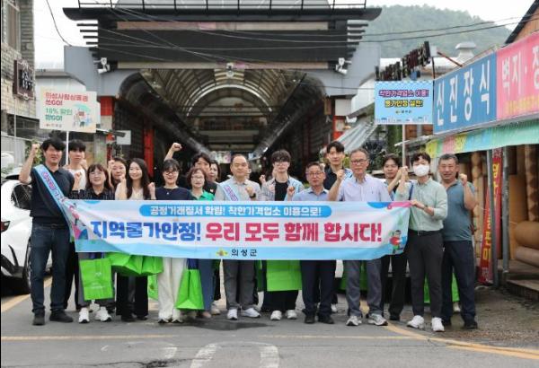 이번 캠페인에는 의성군청 직원, 의성경찰서, 의성소방서 등 유관기관이 함께 물가안정 홍보와 장보기에 동참하여 고물가로 위축된 시장에 활력을 불어넣었다.