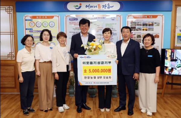 장흥군은 안양농협에 근무하는 오승자 상무가 12일 안양면 지역사회보장협의체에 취약계층을 위한 후원금 500만원을 기탁했다.