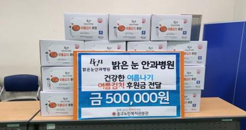 부산 밝은눈안과병원은 지난 9월 12일 중구노인복지관분관에‘중구 저소득 어르신의 건강한 여름나기(여름김치)’ 후원금 50만원을 전달했다.