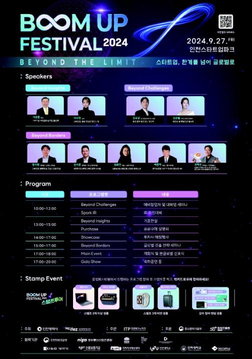 인천경제자유구역청과 인천테크노파크는 오는 27일 인천스타트업파크에서 ‘붐업페스티벌 2024’를 개최한다고 밝혔다.