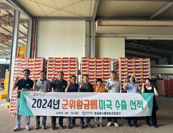 대구광역시 군위군황금배수출영농조합법인 선과장에서 공동선별 작업을 마친 황금배는 미국으로 출하되며, 1999년 첫 수출 이후 꾸준한 성과를 이어오고 있다.