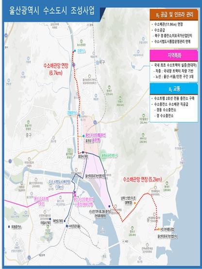 산업단지 중심으로 구축 된 수소 배관(188km)을 태화강역을 거쳐 북구 양정동 율동열병합발전소(10.5km)까지 연결했다.