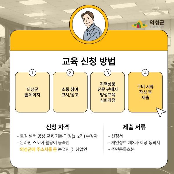 교육을 희망하는 자는 군청 홈페이지에서 공고를 확인하여 서류를 구비해 신청하면 된다.